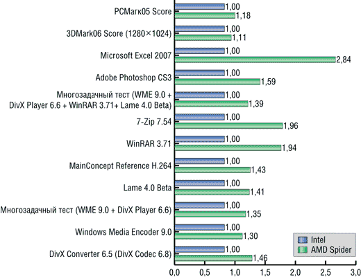 Рис. 2. Сравнение производительности платформ AMD Spider и Intel