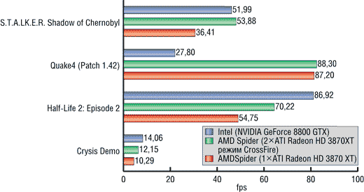 чем две видеокарты ATI Radeon HD 3870 XT в режиме CrossFire, а